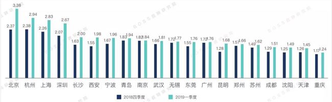 由于人才继续向新一线城市转移, 2019 年Q1